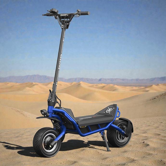 La Rovoron R7 est une trottinette électrique puissante et tout terrain. Son châssis tubulaire renforcé et ses suspensions à toute épreuve vous permettent de conduire partout ou presque.